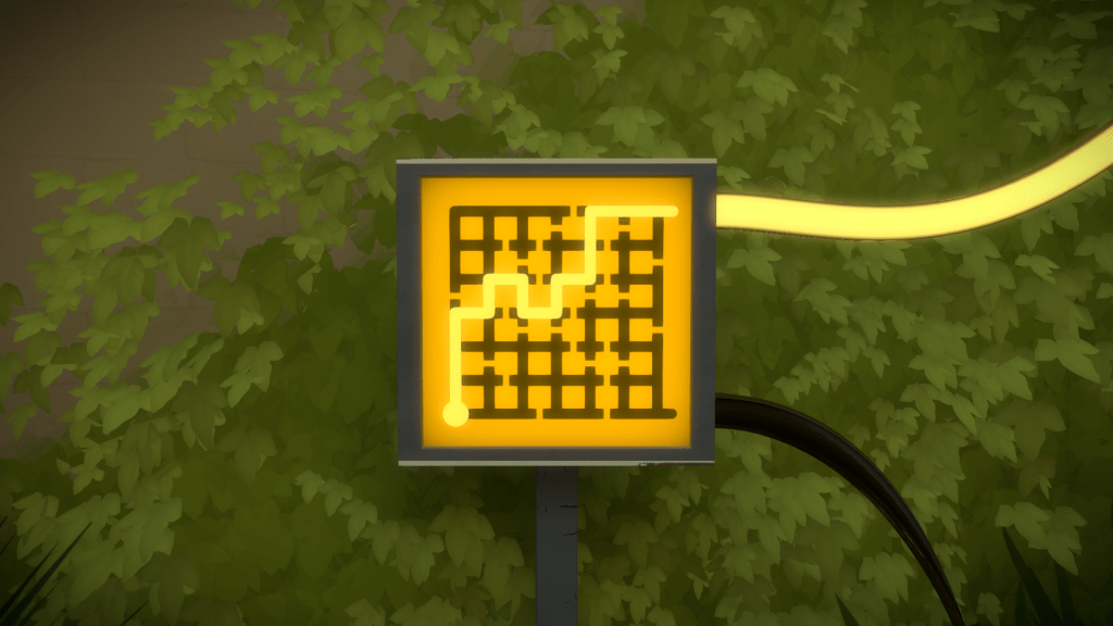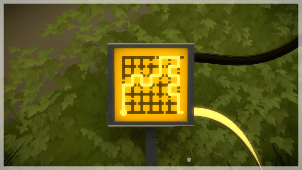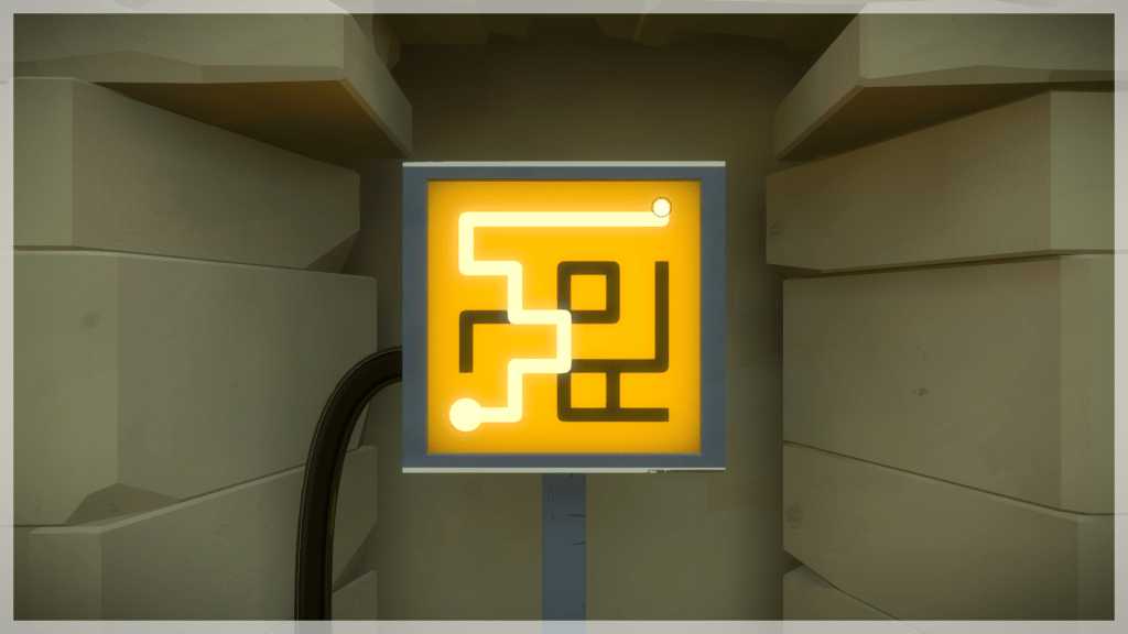 Fundamentally, to navigate a puzzle and eventually solve it the party must learn the mechanics of the puzzle and how they are applied. This means we need to grade the difficulty of the puzzle in a natural progression. I’m going to use what I consider to be the gold standard of this as an example: The Witness. This will contain light spoilers from the first 5 minutes of the game.